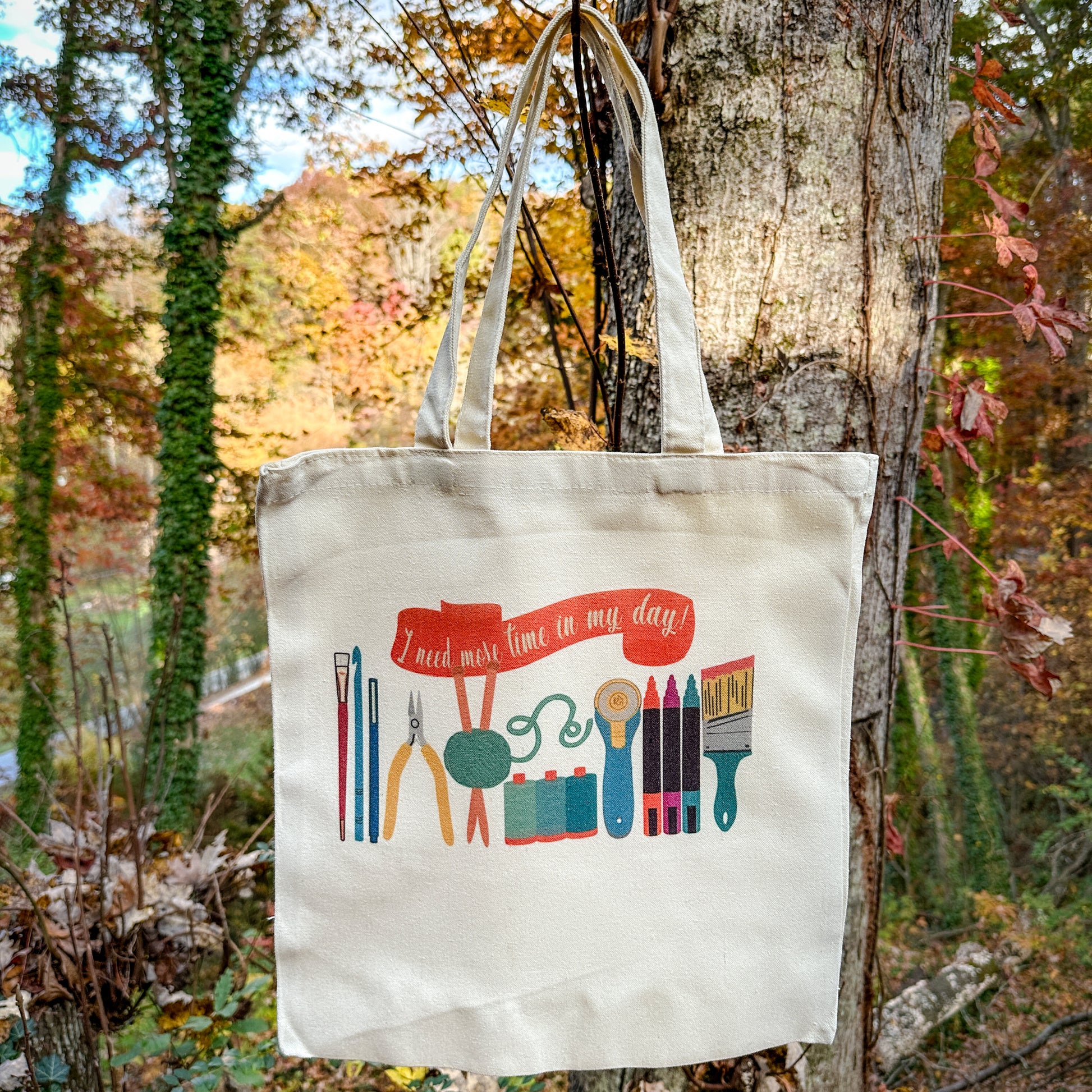 This canvas tote bag is 15"Wx16"H and perfect to carry your groceries, books, or craft supplies.