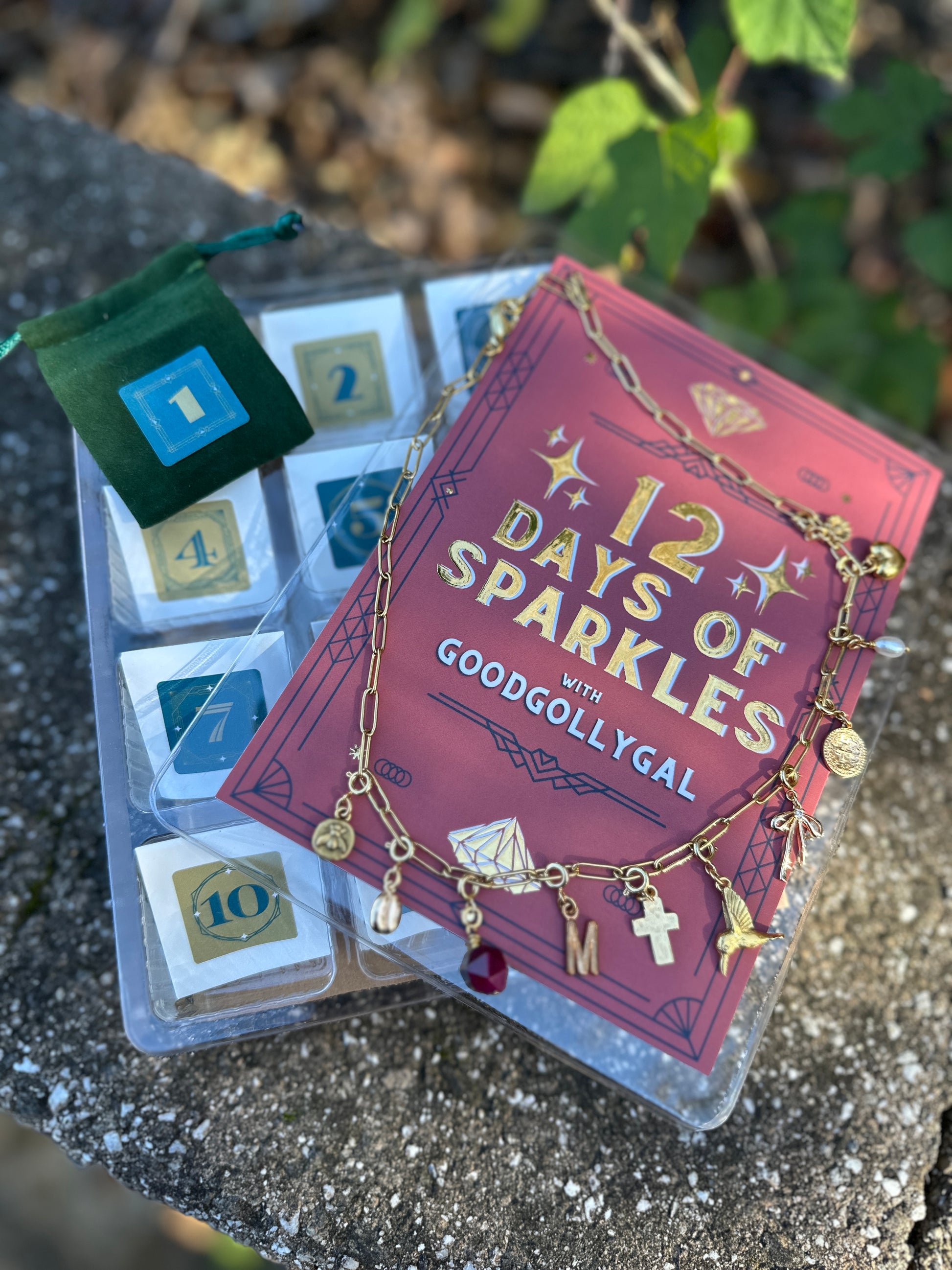 Give the gift of Sparkles this Holiday Season. This 12 day advent calendar is fully customizable. The necklaces and bracelets come in your choice of gold plated or silver plated paperclip 18" chain for the necklace or 8" bracelet (You can easily use the links to size these down).
